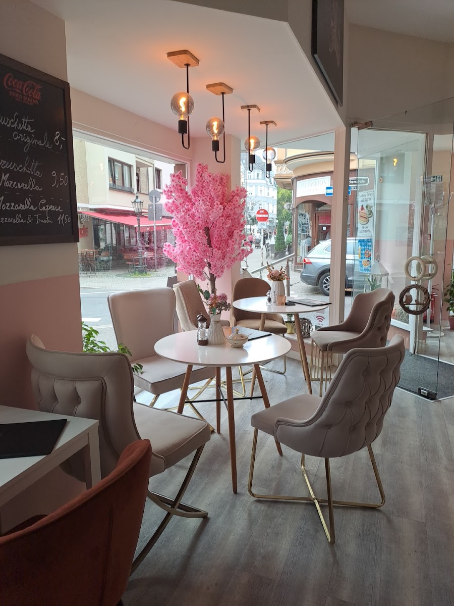Café Romantica is a cozy neighborhood café nestled on Börchemstraße, just a short stroll from Benrather Schloss. The space has a quiet, inviting atmosphere that suits both weekday mornings and relaxed weekend afternoons, especially if you’re looking to escape the usual rush. Inside, the seating is arranged around a large round table that naturally encourages conversation or comfortable solo work with a book or laptop.